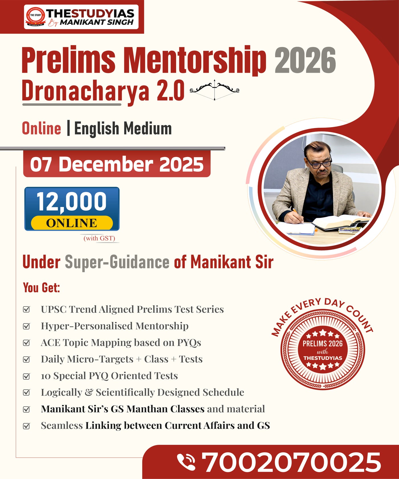 Prepare smartly and strategically for UPSC Prelims 2026 with The Study IAS by Manikant Singh. Dronacharya 2.0 (Prelims Mentorship 2026) is designed to give you clarity, discipline, expert guidance, and consistent tests and evaluation—everything you need to crack Prelims in the first attempt.