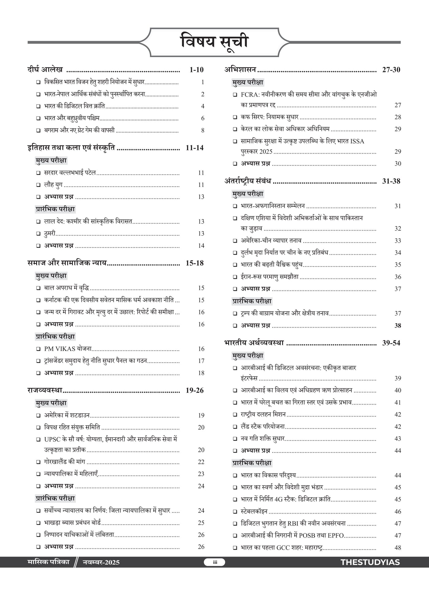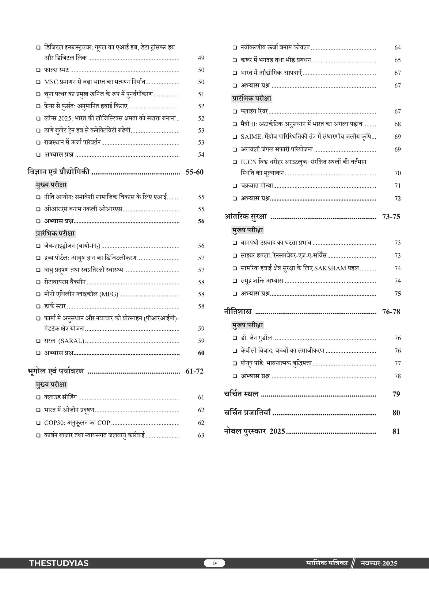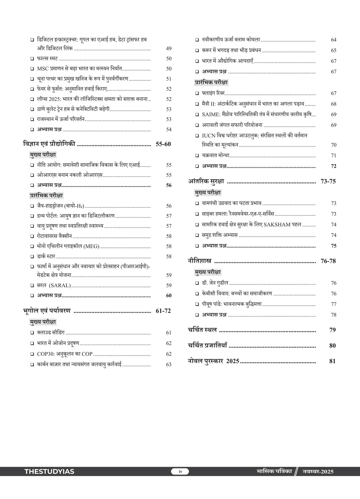 Manthan Current Affairs Magazine (Hindi), November 2025 Edition by The Study IAS is a comprehensive monthly compilation designed for UPSC, State PSC, SSC, Banking and other competitive exams. This issue provides in-depth coverage of important national and international events, government policies, socio-economic developments, and analytical articles with an exam-oriented approach. Curated under the guidance of Manikant Singh, it simplifies complex topics and ensures aspirants stay updated with relevant current affairs, making it an essential resource for effective preparation.