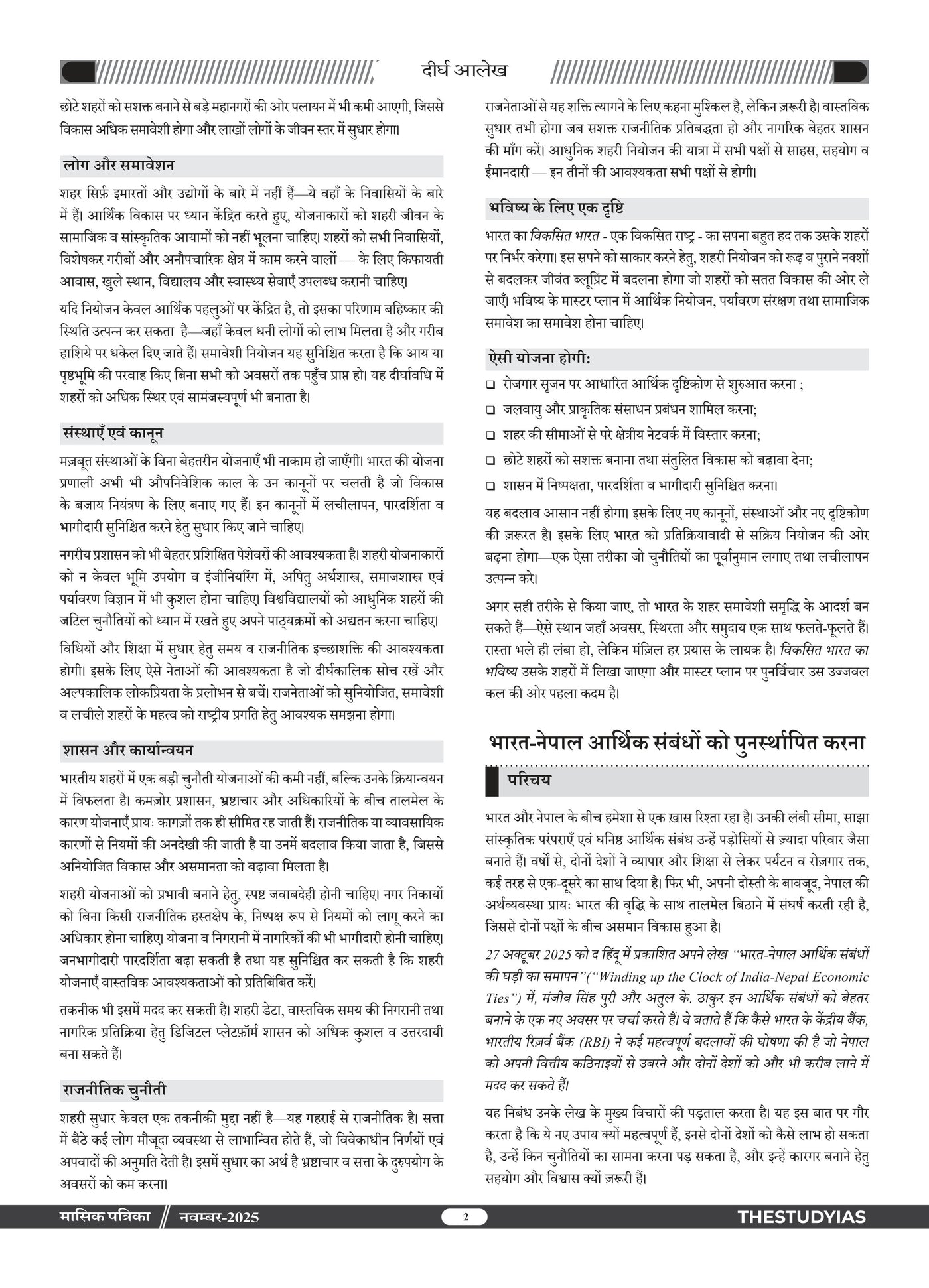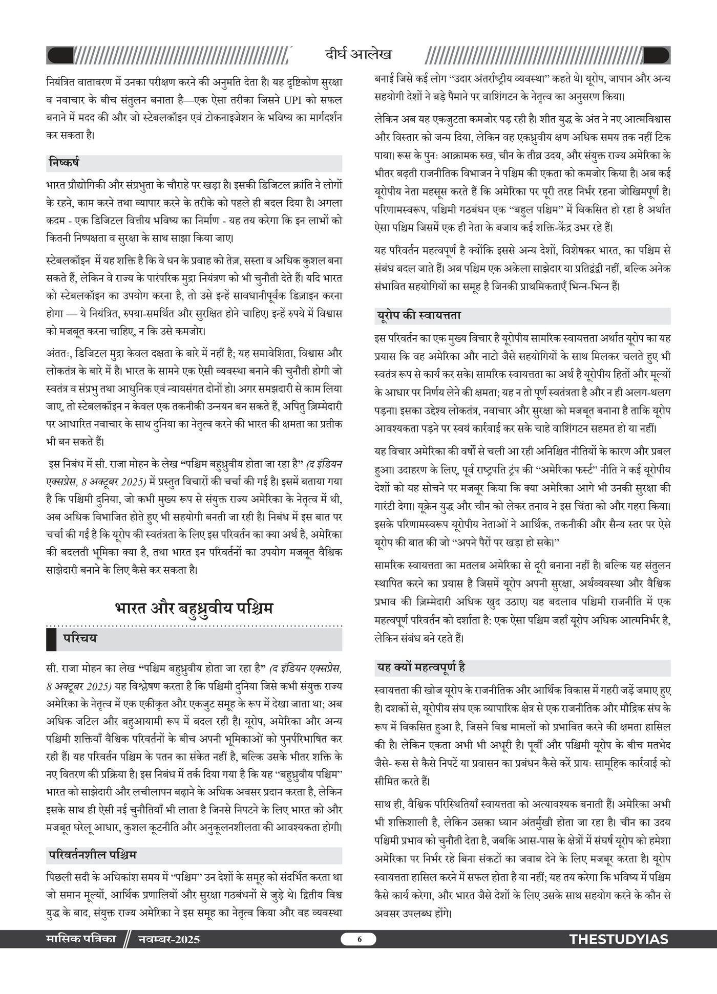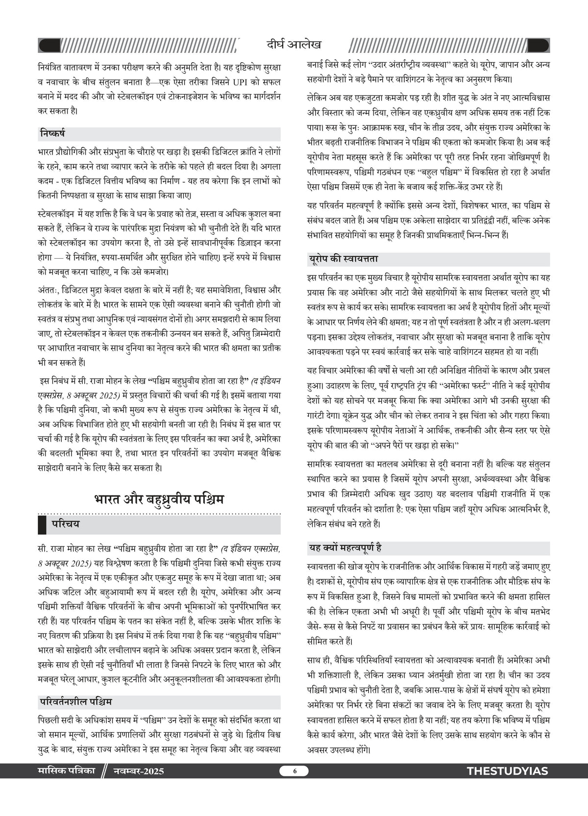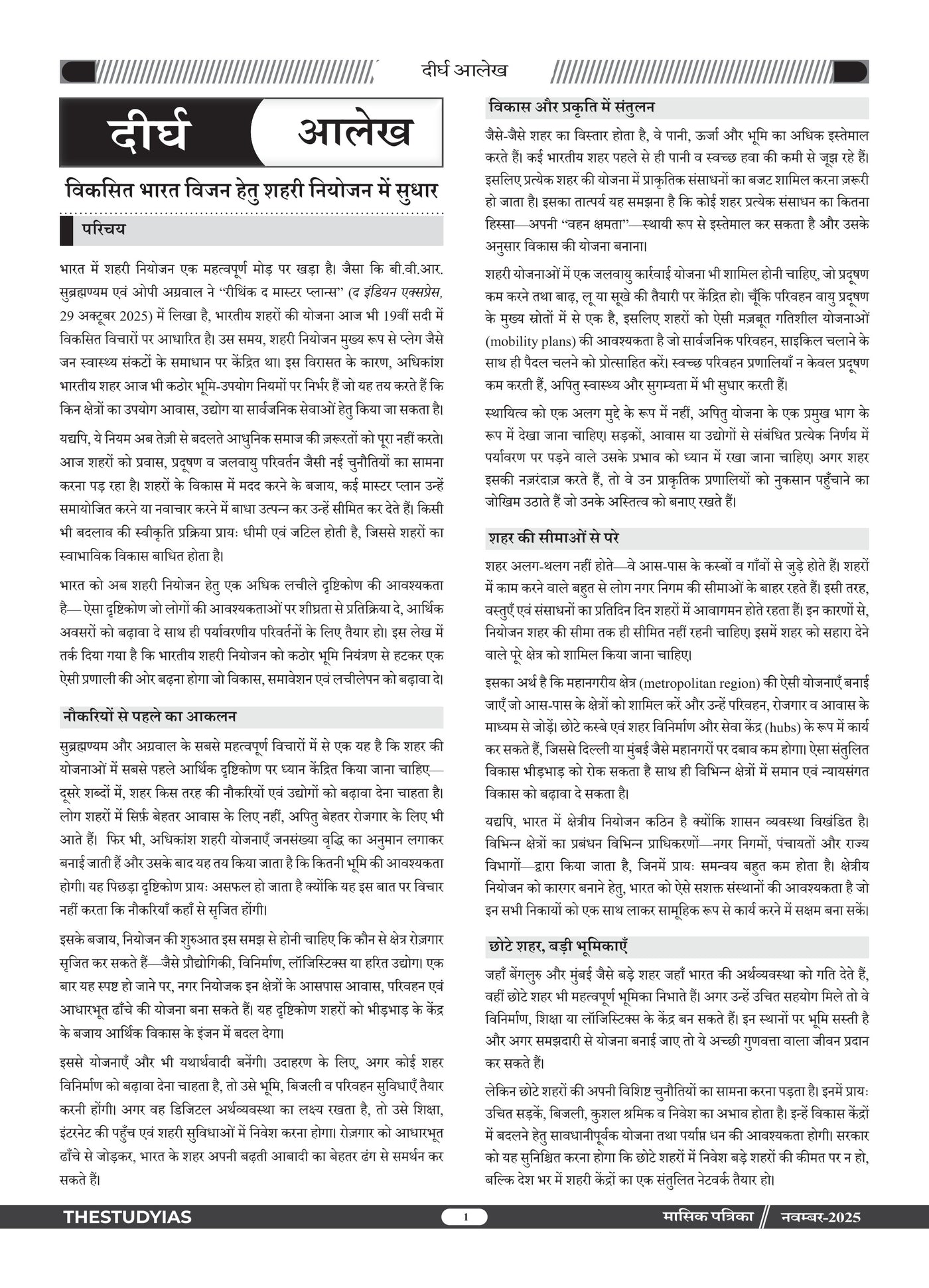Manthan Current Affairs Magazine (Hindi), November 2025 Edition by The Study IAS is a comprehensive monthly compilation designed for UPSC, State PSC, SSC, Banking and other competitive exams. This issue provides in-depth coverage of important national and international events, government policies, socio-economic developments, and analytical articles with an exam-oriented approach. Curated under the guidance of Manikant Singh, it simplifies complex topics and ensures aspirants stay updated with relevant current affairs, making it an essential resource for effective preparation.