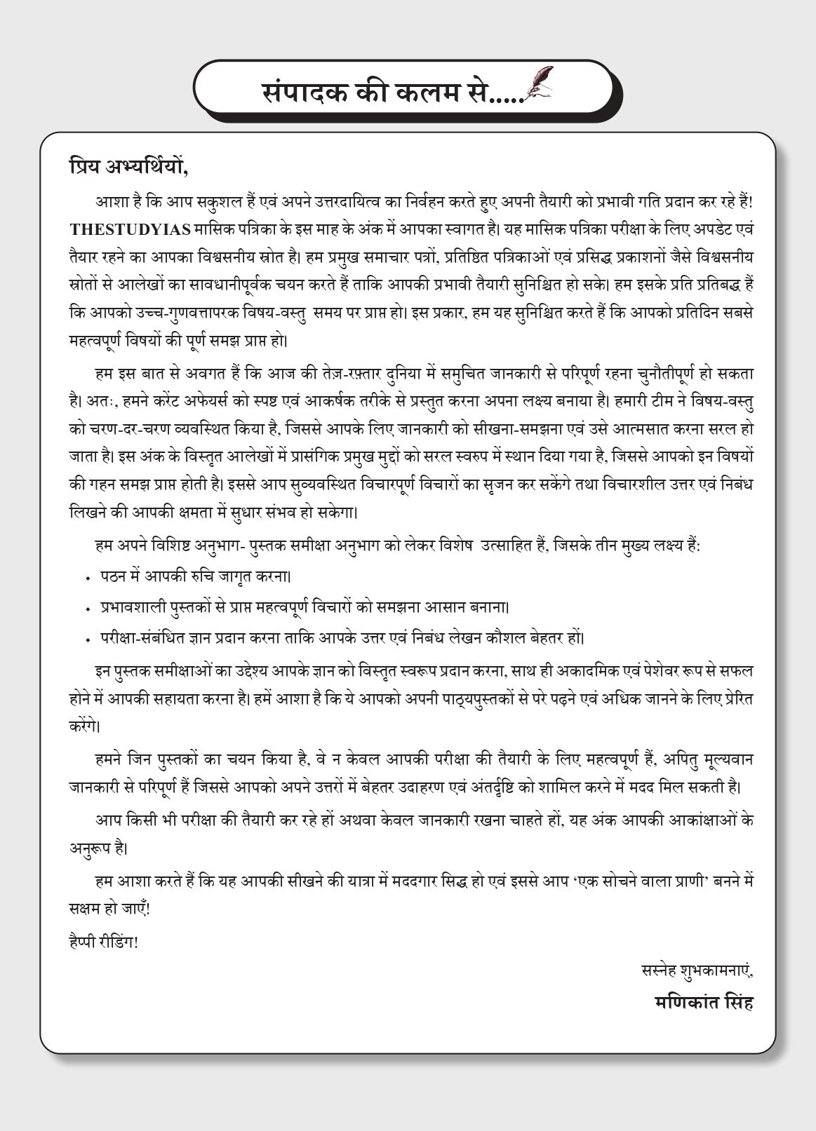 Manthan Current Affairs Magazine (Hindi), September 2025 Edition by The Study IAS is a comprehensive monthly compilation designed for UPSC, State PSC, SSC, Banking and other competitive exams. This issue provides in-depth coverage of important national and international events, government policies, socio-economic developments, and analytical articles with an exam-oriented approach. Curated under the guidance of Manikant Singh, it simplifies complex topics and ensures aspirants stay updated with relevant current affairs, making it an essential resource for effective preparation.